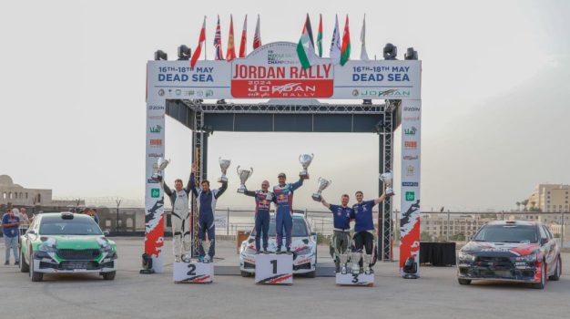 ونال البطل ناصر العطية (قطر) وملاحه جوفاني بيرناكي (بولندا) لقب رالي الأردن على متن سيارة سكودا فابيا “آر سي”، بزمن 2.08.28.2 ساعتين والتي اختتمت منافساتها اليوم السبت في منطقة البحر الميت على مدار 3 أيام.
