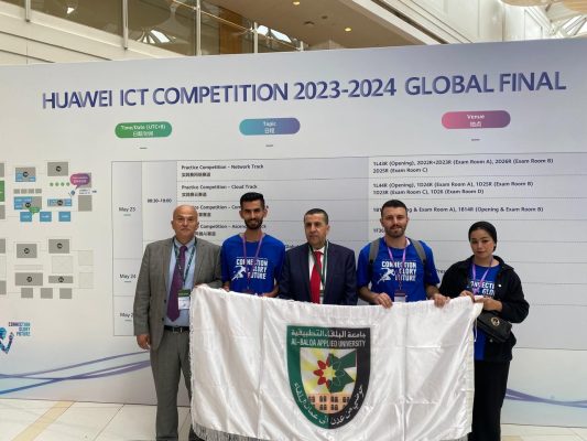 كما حضر رئيس الجامعة الأستاذ الدكتور أحمد فخري العجلوني الحفل الختامي لمسابقة هواوي العالمية في قطاع الاتصالات وتكنولوجيا المعلومات، حيث يشارك في هذه المسابقة فريق من طلبة جامعة البلقاء التطبيقية الذين تأهلوا إلى الدور النهائي بعد أداء متميز في المراحل المحلية في الاردن والاقليمية في البحرين. وأعرب مشرف الفريق، الأستاذ الدكتور عمر أحمد الزعبي، عن عظيم شكره لرئيس الجامعة على دعمه المتواصل لفريق الجامعة المتميز، مما كان له الأثر الكبير في نشر ثقافة الإبداع والتميز بين طلبة الجامعة كافة.