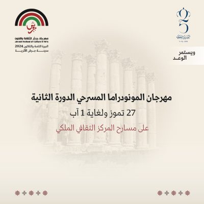ضمن فعاليات مهرجان جرش الثامن والثلاثين للثقافة والفنون، تنطلق في 27 من الشهر الجاري في المركز الثقافي الملكي الدورة الثانية من مهرجان المونودراما المسرحي، الذي يشتمل على مشاركات محلية وعربية، ويكرّم خلاله الفنان والمسرحي الأردني أشرف أباظة شخصيةً للمهرجان .