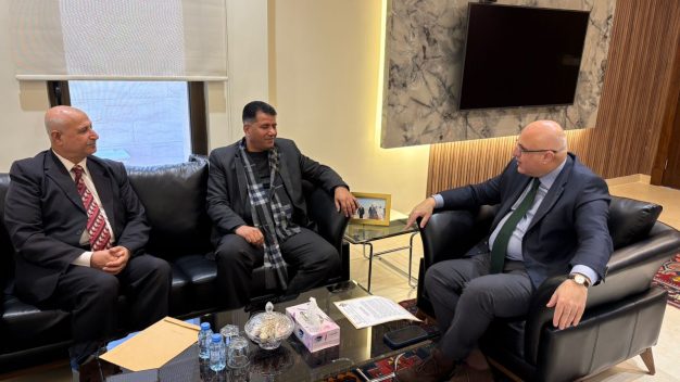 بحث سفير جمهورية أذربيجان في الأردن السيد إليدر ساليموف ورئيس بلدية الباسلية السيد طالب منصور الحماد اليوم آفاق التعاون في مختلف مجالات العمل البلدي، وخاصة ما يتعلق بالتوأمة بين بلدية الباسلية وإحدى بلديات أذربيجان، والعمل على إقامة مشاريع تنموية مشتركة في مناطق البلديتين، والاستفادة من خصوصية وميزة كل بلدية.