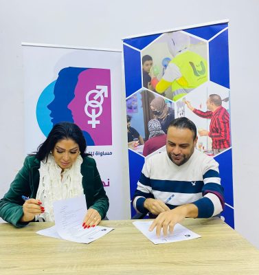 وقعت مؤسسة مساواة للتدريب وحقوق الإنسان، ممثلة بمديرتها العامة الدكتورة هبة حدادين، شراكة استراتيجية مع جمعية تحفيز للريادة والتطوير في محافظة إربد، ممثلة برئيس الجمعية الأستاذ أحمد شتيات.، في إطار التزامها بالمسؤولية المجتمعية لتعزيز التنمية المستدامة في المجتمعات المحلية، تهدف هذه الشراكة، الأولى من نوعها، إلى تعزيز التعاون المشترك في خلق بيئة ريادية حاضنة في المجتمع الأردني، وتنفيذ مبادرات ومشاريع مشتركة تساهم في دفع عجلة التنمية المستدامة في الأردن.
