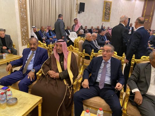 وكان في استقبال الجاهة حشد كبير من شيوخ ووجهاء وشخصيات رسمية وشعبية من عشيرة الحشايشة ومحافظة مادبا وجوارها برئاسة الباشا متعب وصيوص الزبن