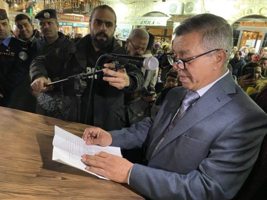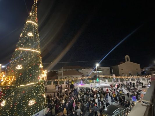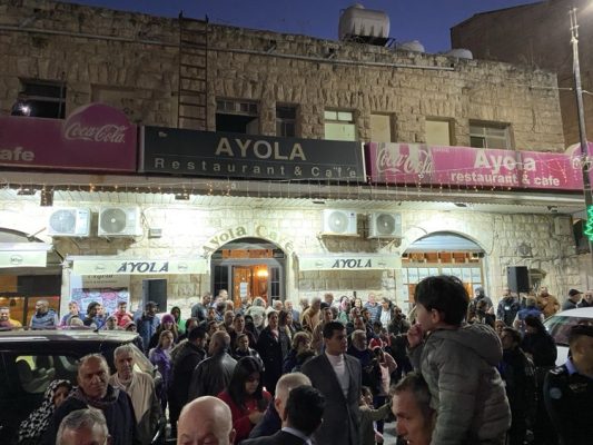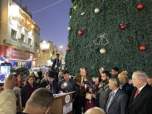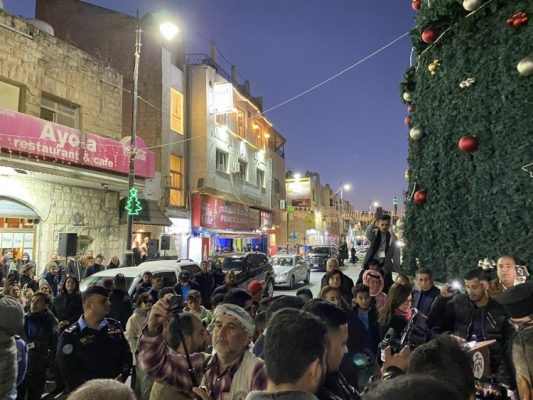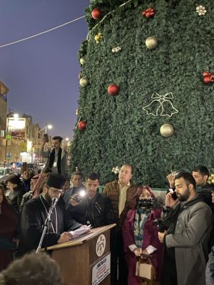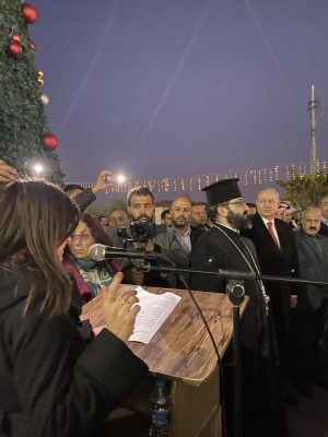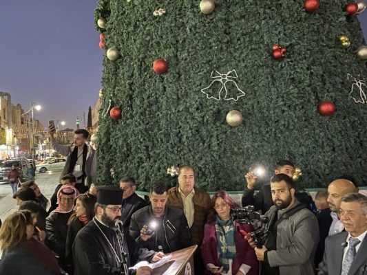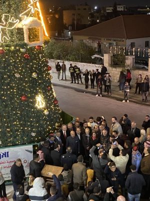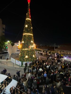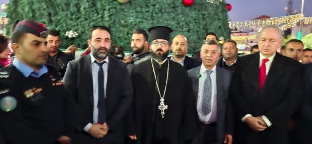 رئيس بلدية مادبا يضيء شجرة عيد الميلاد في ساحة السلام