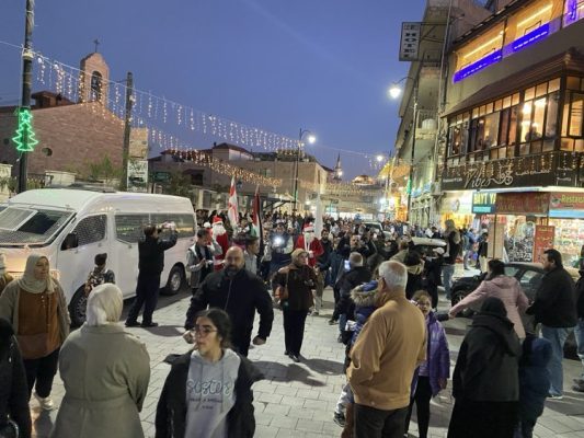 واشتمل الحفل الذي إدارته ليانا جعنيني مسيرة انطلقت من مركز زوار مادبا إلى موقع إضاءة الشجرة في ساحة السلام بمشاركة فرقة كشافة الروم الأرثوذكس مادبا .