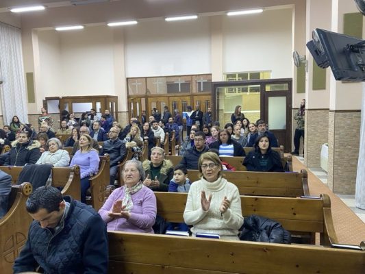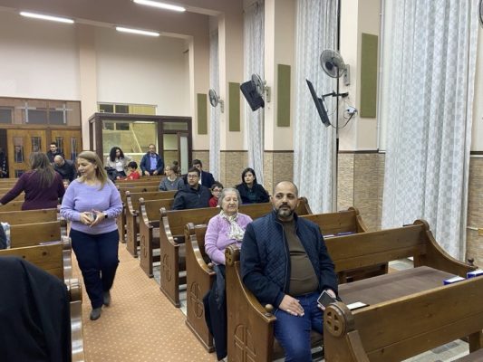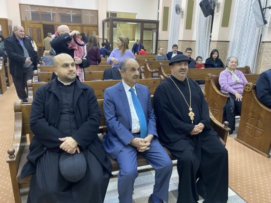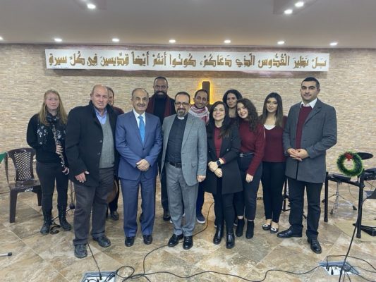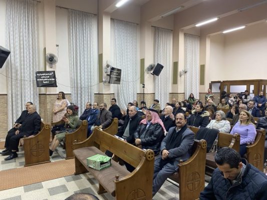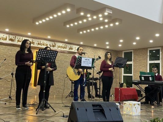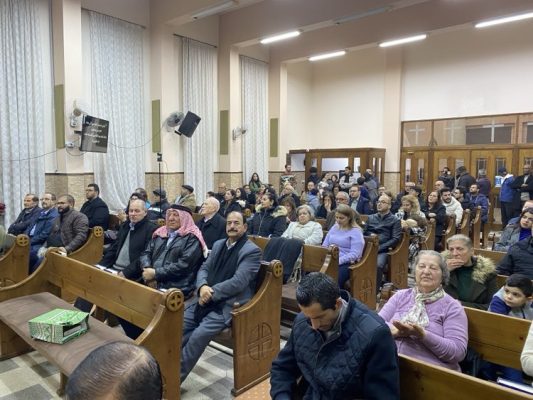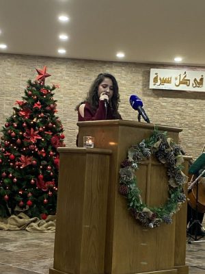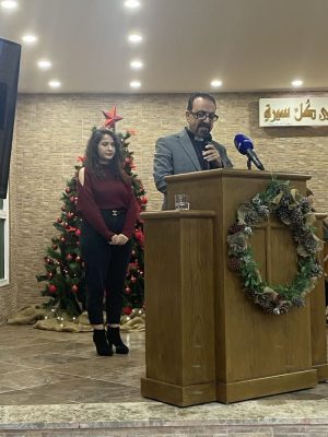 واشتمل الحفل الذي إدارته الشابه مير السلايطة على ترانيم دينية شارك فيها مسؤول الكنيسة القس وليد مدانات الذي قرأ من كتاب إنجيل متا والأب عاطف عبدالنور وفرقة شباب كنيسة الناصري الانجيلية بقيادة الشاب جاد الصفدي ود. فادي عجيلات وباشراف سيرين زكاك .