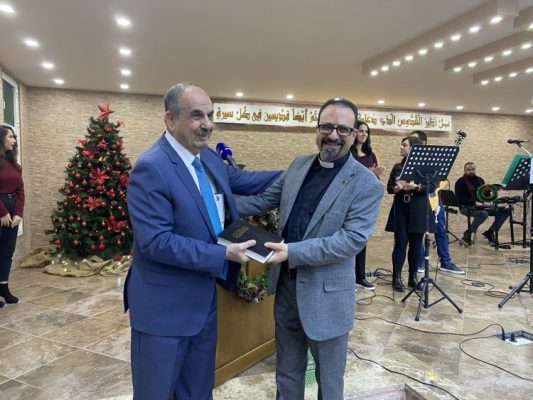 وفي ختام الحفل تم تسليم النائب عيسى نصار نسخة من الكتاب المقدس .