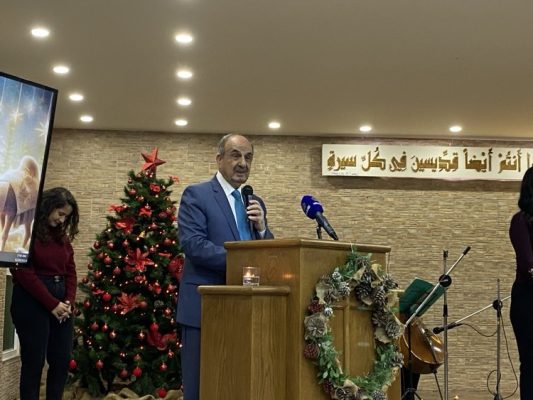 أضاء النائب عيسى نصار الكرادشة مساء اليوم شجرة عيد الميلاد في كنيسة الناصري الانجيلية بمادبا بحضور الآباء معين الحلو وطارق ابوحنا وعاطف عبدالنور وخليل عبابسه وسيمون زكاك