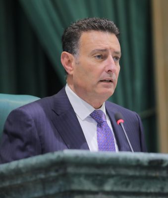 وقال رئيس مجلس النواب: نحن والحكومة في مركب واحد لتحقيق الأهداف الوطنية فإن اختلفنا في الأدوار لا نختلف في الأهداف، وقد رسم الدستور والنظام الداخلي حدود العلاقة بين السلطتين والقائمة على مبدأ التوازن والتكامل والاحترام المتبادل بينهما، واسمحو لي في هذا المقام أن اعبر عن كامل الاحترام والتقدير لمعالي وزير المالية على الصعيدين الشخصي والمهني ولا يمكن أن نتقصد الإساءة له أو لأي من الوزراء في هذه الحكومة، في الوقت الذي لا نسمح فيه بالتطاول أو المساس بكرامة أي نائب في هذا المجلس فالمواطن اذا لجأ للنائب في مظلمة وقام بالتواصل مع المسؤول المعني فإن واجب المسؤول تحقيق مصالحه في اطار القانون، وأنا كرئيس لمجلس النواب وزملائي الذوات الكرام لن نسمح بأن يعتدي مواطن على حق الاخرين ولن نكون إلا في صف الحق وتعزيز سيادة القانون.