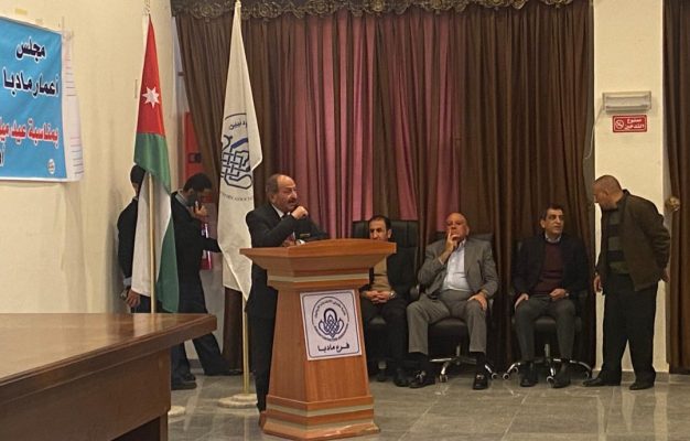 ورحب رئيس مجلس اعمار مادبا العين محمد خريبات الازايدة بالعين خولة العرموطي و الحضور وقال اننا نحمي الاردن للاردنيين وندافع عن فلسطين للفلسطينيين ولن نسمح لاحد ان يكون بديلا في هذا الوطن وان ما يقال من احاديث هنا وهناك انما هي تذهب ادراج الرياح وسيبقى الهاشميون في هذا الحمى والاردنيون يعضدونهم دائما ويقفون معه ولن يكون الاردن تصفيه حسابات على مصالحه الداخليه والخارجيه.