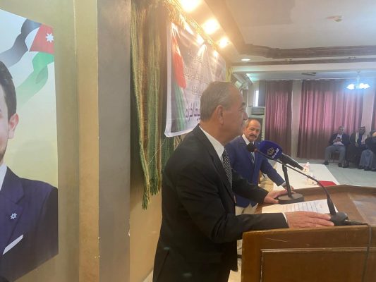 وذلك خلال رعايته لقاءً وطنياً حاشداً في قاعة مطعم ضانا بمادبا دعماً لمواقف جلاله الملك عبدالله الثاني، والوحدة الوطنية والجيش العربي، والأجهزة الأمنية.