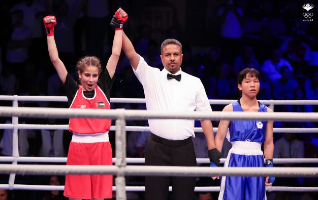 وفاز اللاعب معتز المشاعلة في نزاله الأول على حساب اللاعب الفيتنامي ضمن منافسات وزن تحت ٥٢ كغم.