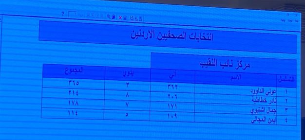 فيما فاز بمنصب نائب النقيب عوني الداوود وحصل على 365 صوتا في حين لم يحالف الحظ نادر خطاطبه وحصل على 214 صوتا وجمال شتيوي وحصل على 178 صوتا وأيمن المجالي وحصل على 114 صوتا .