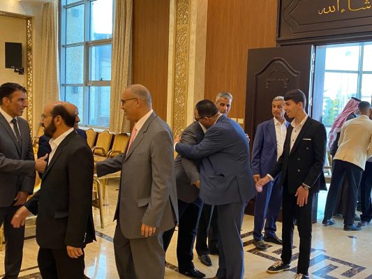 وتكرم اللواء المتقاعد الباشا غازي السرحان بالرد على الجاهة بالقبول والايجاب كما اتفق الطرفين وقرأ الجميع الفاتحة على نية القبول في اجواء من المحبة والسعادة دون مراسم احتفالية .