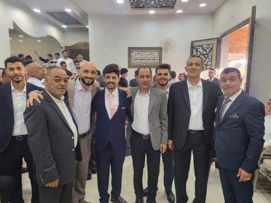 توجهت جاهة عشائرية من شيوخ ووجهاء برئاسة الشيخ عارف القيسي ابورائد إلى ديوان عشيرة الحشايشه في مادبا لطلب يد ابنتهم جود خليل احمد الحشايشه إلى ابنهم أركان محمود الزميلي بحضور جمع غفير من اهل العروسين واقرباؤهم ولنسباؤهم واصدقاؤهم وجيرانهم ومدعوين .