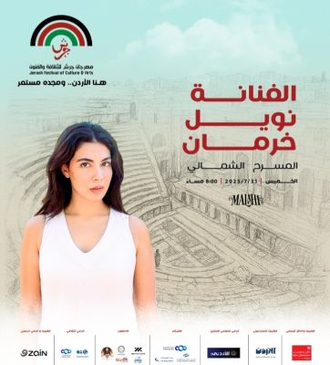 تحيي الفنانة نويل خرمان حفلا فنيا كبيرا على المسرح الشمالي في جرش وذلك عند الساعة الثامنة من يوم الخميس الموافق 31/7/2025 .