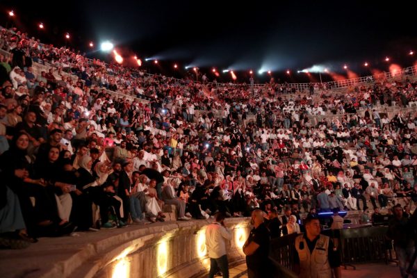 احتشد جمهور كبير في المسرح الجنوبي بانتظار المطربة أحلام التي سبقت حضورها بتحية للأردن ووعدت بتقديم ليلة استثنائية، وقالت “جئت من دار زايد الى بلد النشامى”.