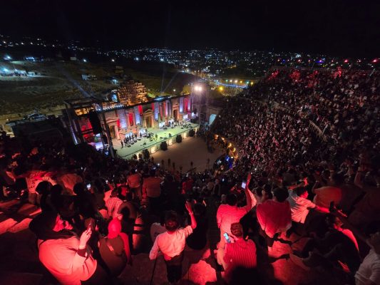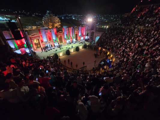 نجح رهان إدارة “مهرجان جرش للثقافة والفنون” على “نجم الأغنية الشعبية” عيسى السقار، عندما اختارته ليكون نجماً لحفل “هنا الأردن.. ومجده مستمر”، عاكسا خطاب المهرجان الثقافي الفلكلوري الأردني إلى العالم، ومرسلا عدة رسائل مضمونها، أن الفن لا يتجزأ وان النجاح والتقدم والنجومية ينبع من تقديم الفنان لفلكلوره، وان النجاح العربي يبدأ من تقديم الفنان نفسه إلى الناس بإبداعه وصورته الحقيقة.