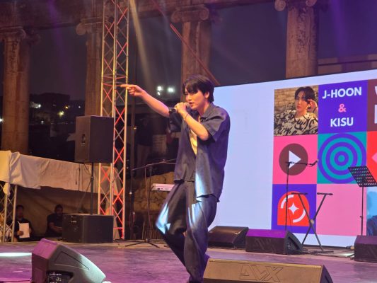 واستكمل الحفل بعرض فني للفنانين الكوريين “kisu ” و “jung hoon ”الذي كان جمهور جرش في انتظارهم ليعيشوا تجربة جديدة وفريدة من نوعها مع الفن الكوري الحديث.