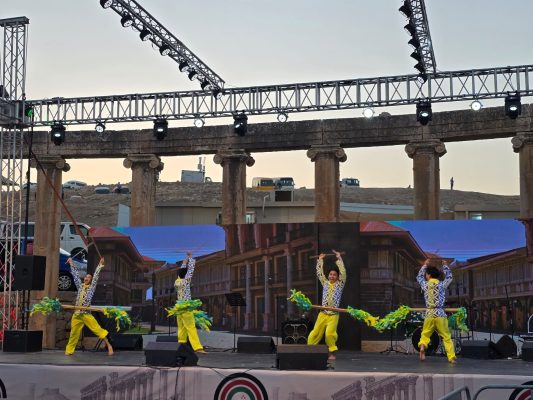 كانت بداية الأمسية الفنية بعرض ابداعي قدمته الفرقة الفلبينية “Samtoy Dance Troupe ” بحضور السفير الفلبيني ولفريدو سي سانتوس والجالية الفلبينية في الأردن وسط أجواء من الفرحة والبهجة.