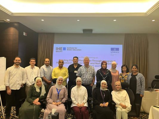 ضمن جهود وزارة المياه والري / سلطة المياه المستمرة لتعزيز قدرات موظفي قطاع المياه بما يتماشى مع أهداف السلطة والرؤى الوطنية التنموية ، اختتمت سلطة المياه برنامجًا تدريبيًا متكاملًا بعنوان “بناء صمود المناخ من خلال الإدارة المتكاملة للمياه العذبة والموارد غير التقليدية” “Building Climate Resilience through Integrated Management of Fresh Water and Non-Conventional Resources” بتمويل من برنامج المنح الدراسية لمنطقة الشرق الأوسط وشمال أفريقيا (MSP)، الممول من وزارة الخارجية الهولندية، وبإشراف معهد دلفت للتعليم المائي (IHE Institute for Water Education Delft)، بالشراكة مع سلطة المياه، وبالتعاون مع الجمعية العلمية الملكية والجامعة الأردنية.