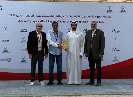 أضاف لاعب الأولمبياد الخاص الأردني احمد عبد الحق ميدالية برونزية لرصيد الأردن، في فئة المسار والسيطرة والقفز عن الحواجز، وذلك في ختام فعاليات المسابقة الإقليمية للفروسيه للاولمبياد الخاص لمنطقة الشرق الأوسط وشمال افريقيا والدوره التدريبية الإقليمية لمدربي رياضة الفروسية التي اختتمت يوم (الأربعاء) في مدينة العين بدولة الإمارات العربية المتحدة.