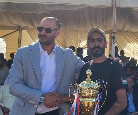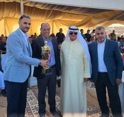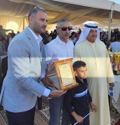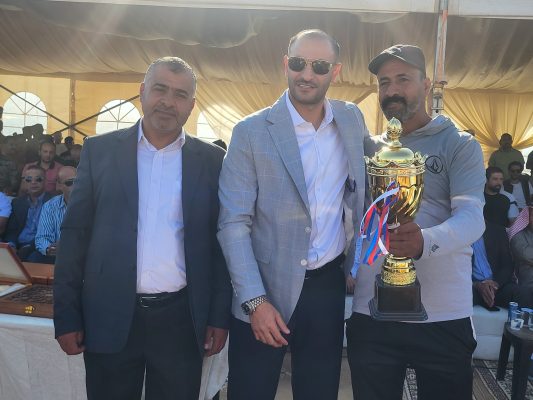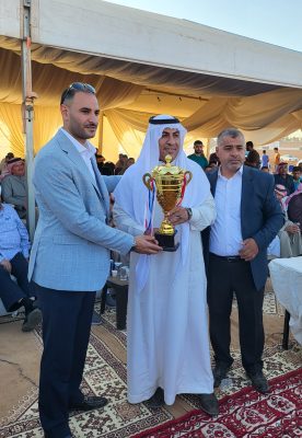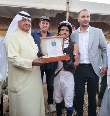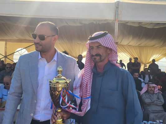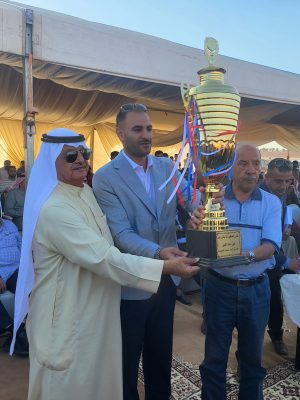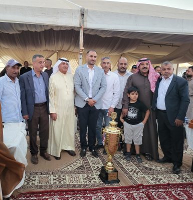 حصد الجواد “المتمرده” لمالكه راكان العبادي وفارسه عمر المطيري لقب مهرجان المرحوم الشيخ فايز عناد الفايز لسباق الخيول العربية الأصيلة الذي اقيم مساء اليوم على مضمار نادي البادية الوسطى لسباق الخيل وذلك في منطقة المريجمات غرب الجامعة الأمريكية في مادبا من ستة اشواط لمسافة ١٣٠٠ مترا بحضور حشد كبير من عشاق ومحبي رياضة سباقات الخيول العربية الأصيلة وجاءت النتائج الفنية للسباق على النحو الاتي :-