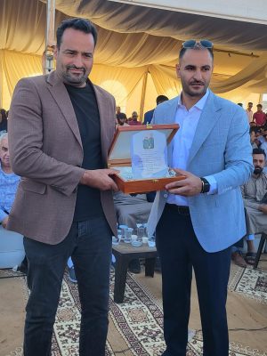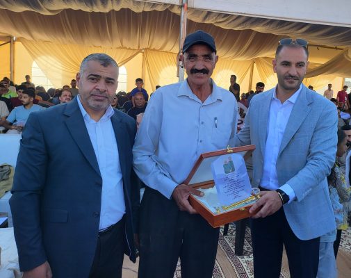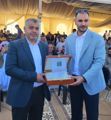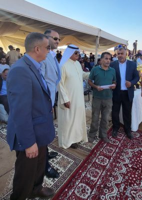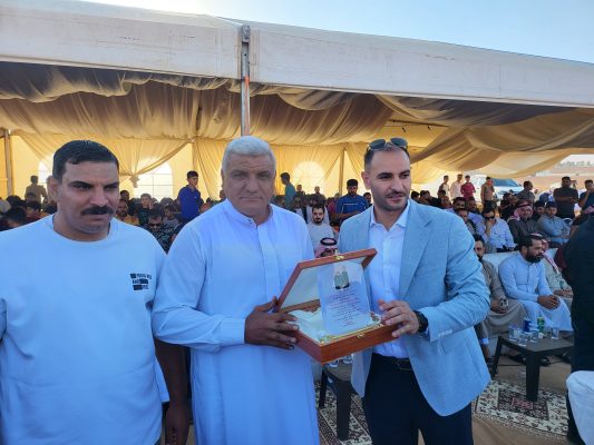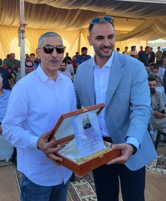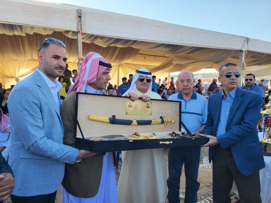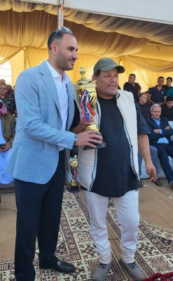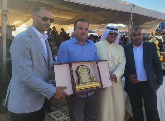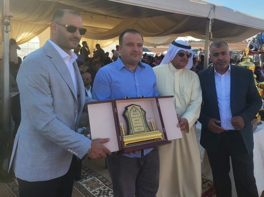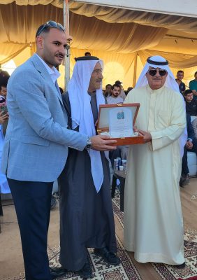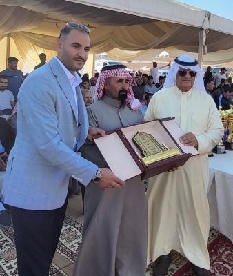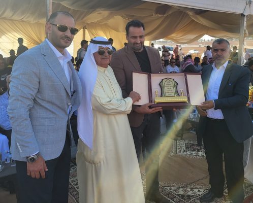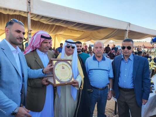 وفي الختام تناوب راعي الحفل وداعم السباق محمود الدويسات ونايف عناد الفايز بحضور اشقائه بتوزيع الدورع والكوؤس والجوائز على مستحقيها .