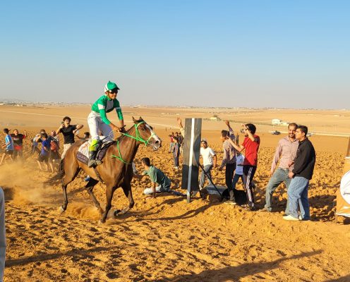 فاز بالشوط الأول المخصص لخيول الدرجة المبتدئة بادية لمسافة ١٣٠٠ مترا الجواد “محبوبة ريم ” لمالكه أنس الدويسات وفارسه همام البلوي قاطعا المسافة بزمن قدره دقيقة و٣٣ ثانيه وحل ثانيا الجواد “حيفا” لمالكه عامر الشقور وفارسه أحمد سمعه وجاء ثالثا الجواد “مبروكه”لمالكه صدام الدعجة وفارسه مالك الخالدي .