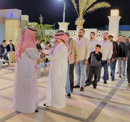 وتخلل الحفل مأدبة عشاء فاخرة على شرف المدعوين، بمشاركة فرقة العبابيد للفنون الفلكلورية والسامر “الفنان عماد العبادي والفنان زياد العبادي والفنان العراقي حسام العبادي والشاعر حكمت الغزالي الشمري وفرقة دنيا الفرح ومركز أبو خالد الدحادله للضيافة وفريق قصر السليمان بقيادة المهندس محمد السعيدات وسط أجواء احتفالية مليئة بالفرح والسعادة.