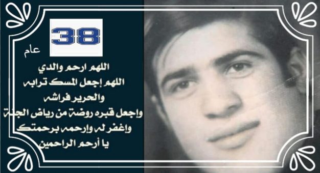 38 عام مضت على فراقك يا أغلى الأحباب ، 38 عام وأنا أفكر وأقول لنفسي بأن هذا حلم وكابوس سأفيق منه لأرى والدي يصول ويجول في البيت ، لكني أعود وافيق للواقع وأتذكر بأنه فارقنا إلى الرفيق الأعلى الذي كان يتمنى أن يكون بجواره ونلت ما كنت تتمناه بعد معاناتك مع المرض الذي انهك جسدك اليوم اقولها يا ابي وانا اعاني من العديد من الامراض اقولها وانا اشعر بمعاناتك ووجعك وصراخك الذي كنت تخفيه كي لا نراه رحمك الله يا اغلى الرجال .