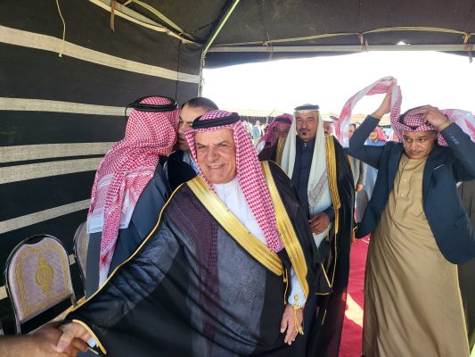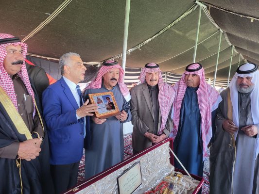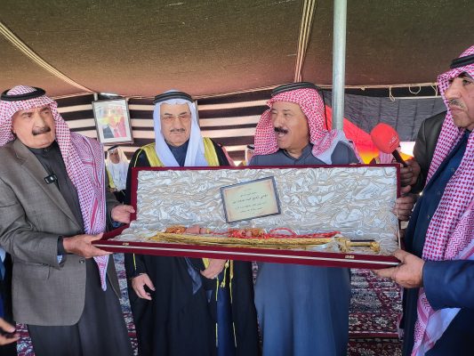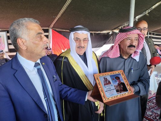 وفي ختام الفعالية، جرى تكريم الشيخ الهقيش بدرع “فرسان الإنسانية والسيف العربي” من قبل الشيخ منصور الحواتمة، تقديرًا لجهوده في إحياء العادات والتقاليد العشائرية، ودوره البارز في المشاركة بجاهات الصلح والإسهام في حل القضايا العشائرية.