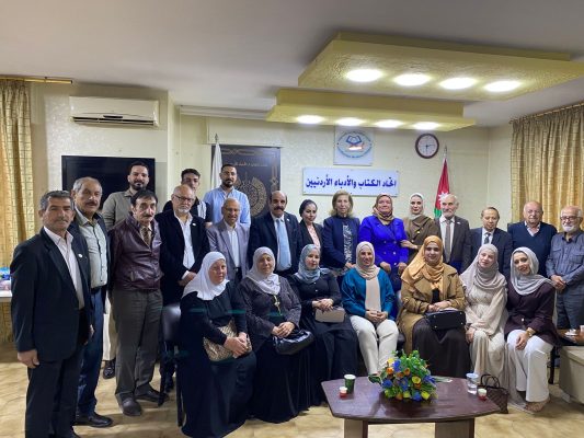 وسط حضور كبير ولافت من الكتاب والأدباء وزوار الإتحاد، والمهتمين بالشأن الثقافي، وبحضور رئيس الإتحاد الشاعر عليان العدوان،