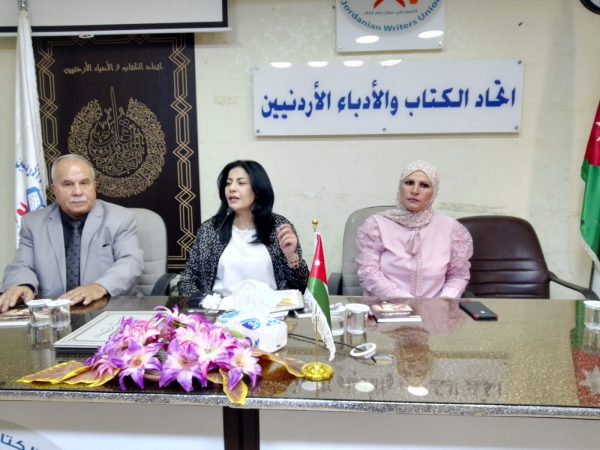 حيث رحب العدوان بالحضور من الضيوف واعضاء الإتحاد مبديا نشاط الجميلي في الابداع والكتابة الادبية المتميزة