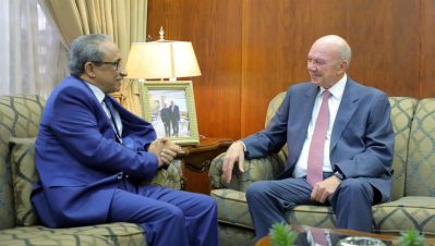 وتناول اللقاء الوضع الاقتصادي العربي الراهن، وتحديات التنمية المستدامة، ومدى تأثير هذه التحديات على النمو الاقتصادي ومعدلات الفقر والبطالة، وأهمية العمل العربي المشترك من خلال جامعة الدول العربية لتجاوز هذه التحديات، بالإضافة إلى السبل الكفيلة والمتاحة لتنظيم العلاقات الاقتصادية بين الدول العربية.